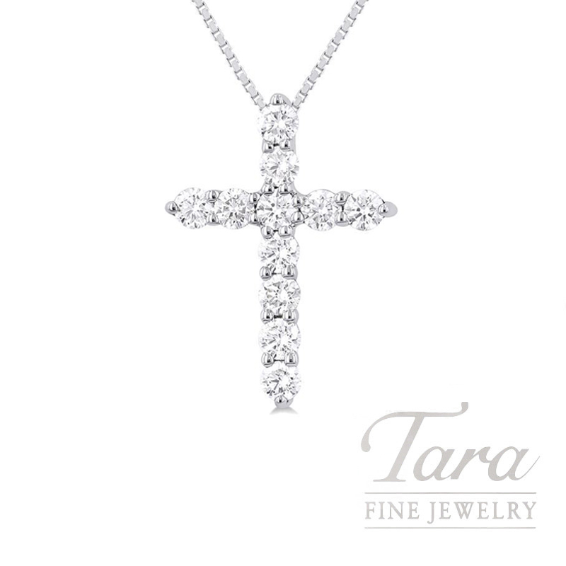 14K White Gold Diamond Cross Pendant Necklace, 0.50TDW