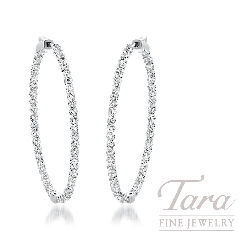 14K White Gold Diamond Eternity Hoop Earrings, 4.00TDW