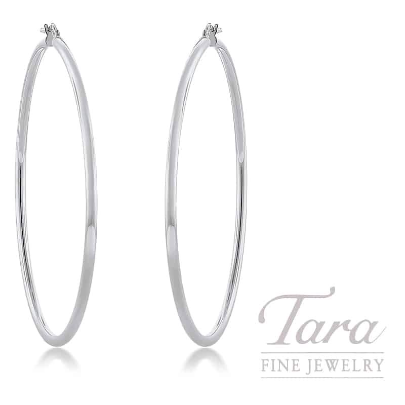 Capture a look of effortless sophistication with these 14K white gold hoop earrings, meticulously designed to be a versatile cornerstone of any fine jewelry collection. Crafted in brilliant, high-polish 14K white gold, these enchanting hoops radiate a mirror-like shine that adds a vibrant sense of style to both casual and formal attire. The sleek, circular silhouette offers a timeless appeal, making these white gold hoops the perfect staple for the modern woman who aspires to be a fashionista with every ensemble. Beyond their glimmering beauty, these earrings are built with the lasting quality and craftsmanship required to remain a cherished favorite in your jewelry wardrobe for a lifetime.
