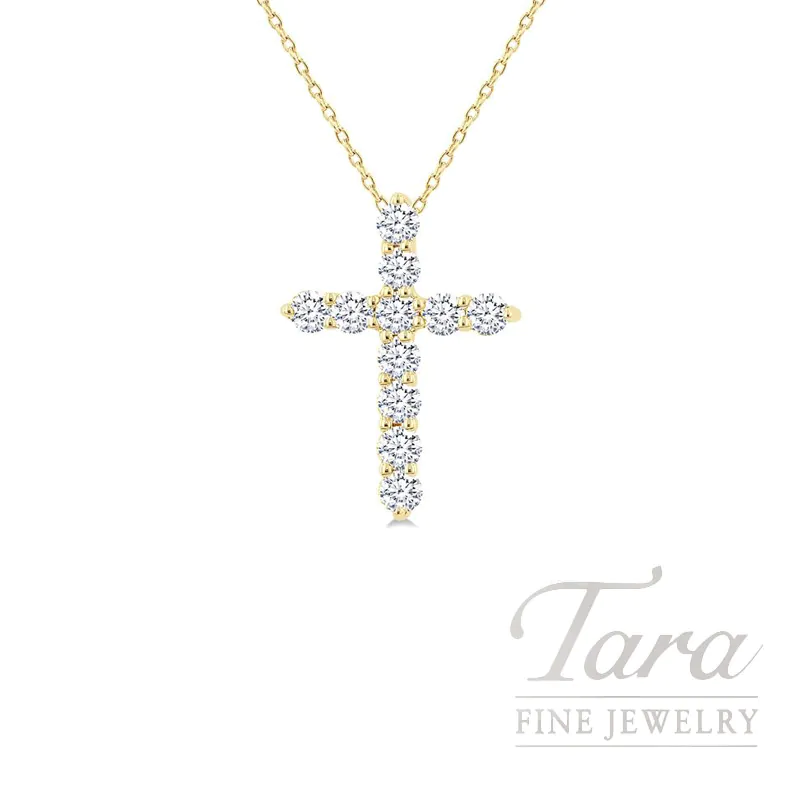 Experience the perfect harmony of devotion and luxury with this exquisite Diamond Cross Pendant Necklace, a hallmark of the fine craftsmanship found here at Tara Fine Jewelry. This stunning Diamond Necklace is meticulously cast in radiant 14K Yellow Gold, providing a warm and classic foundation that enhances the natural fire of every Diamond.