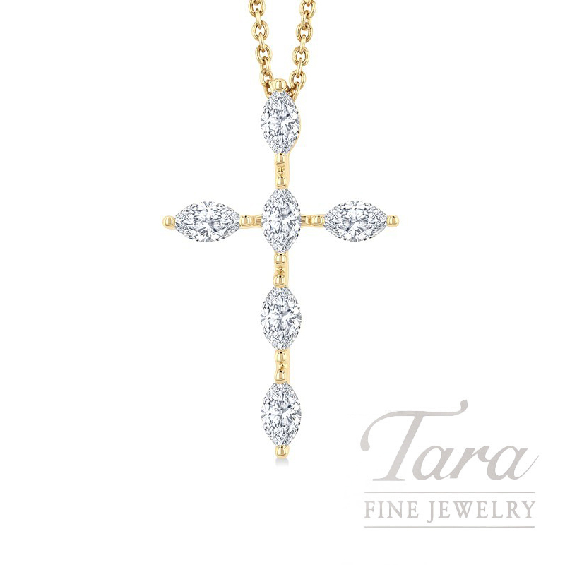 This glorious 14K Yellow Gold Diamond Cross Pendant Necklace is a timeless piece that every jewelry collection needs! You are sure to adore this beautiful Diamond Pendant, crafted from glowing 14K Yellow Gold and fashioned into a glowing cross design on its included 18″ Gold Chain. A true classic, the Cross Pendant features 6 Marquis Diamonds at 0.70TDW. This wonderful Diamond Cross Pendant Necklace promises to deliver everlasting style and sparkle!