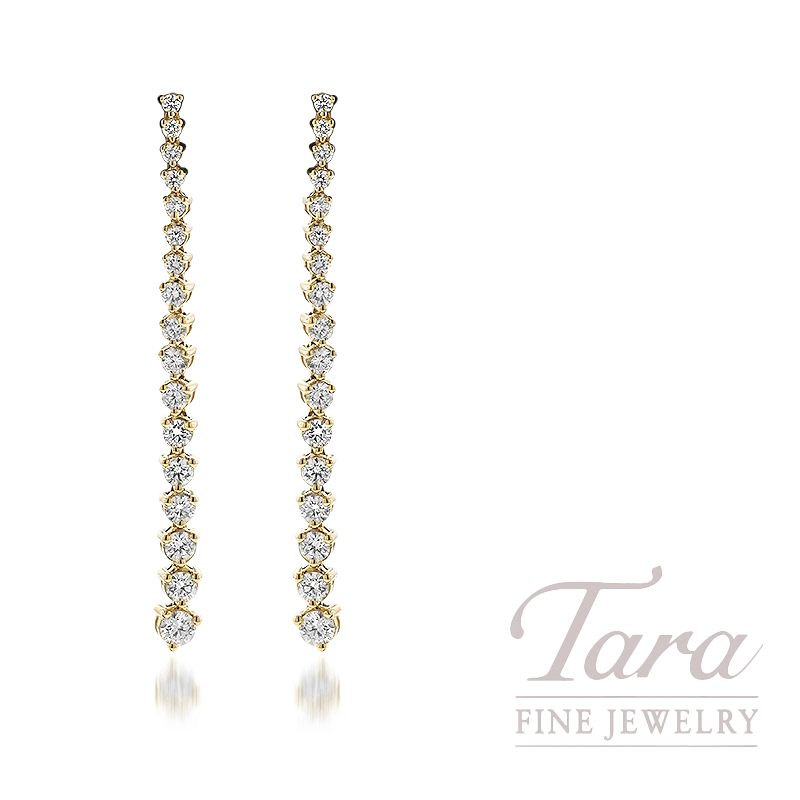 This season calls for something fun and vibrant, so why not try these gorgeous 14K Yellow Gold Diamond Riviera Drop Earrings! Here at Tara Fine Jewelry Company, we showcase a marvelous selection of beautiful fine jewelry. From classic pearl studs to shimmering diamond hoops to trendy dangle earrings like these, Tara has everything you can ever want when it comes to fashion Diamond Earrings! These enchanting Riviera Drop earrings are crafted in brilliant 14K Yellow Gold and feature two darling rows of 34 twinkling Round Diamonds at 1.50TDW f…