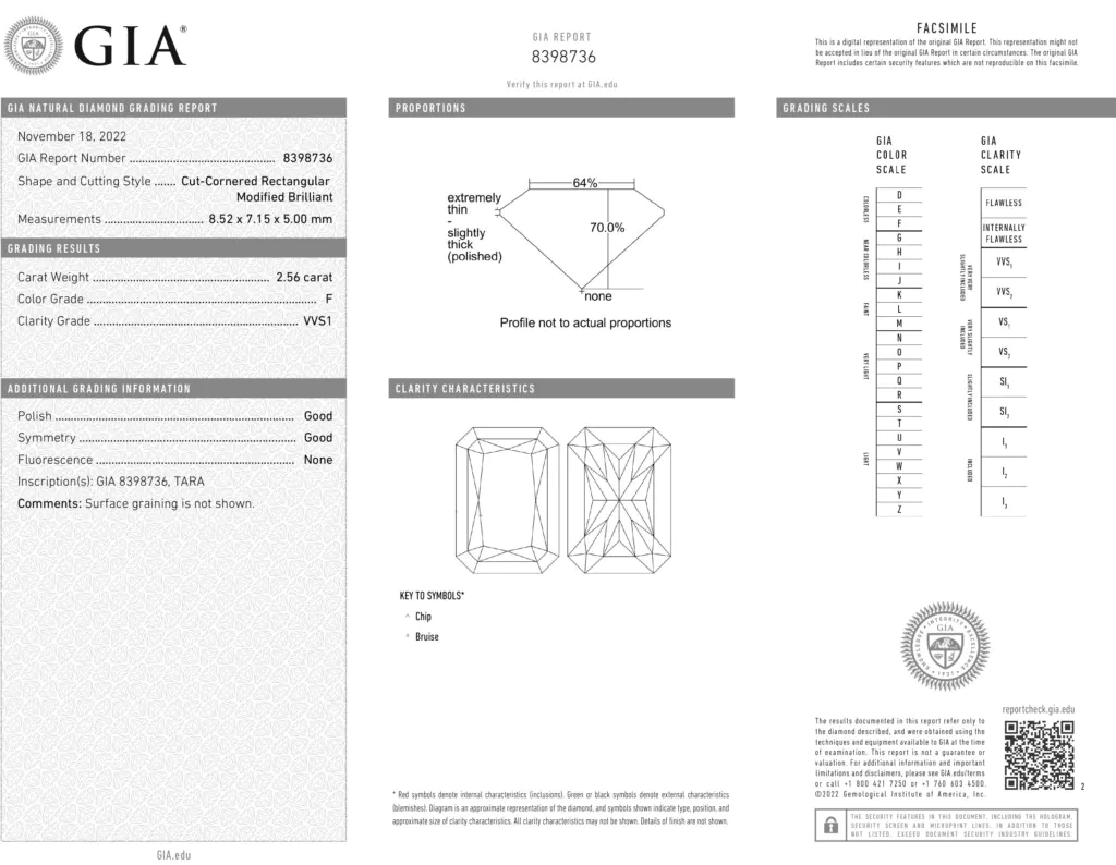 Diamond Center Stone #190-02301: 2.56CT/F-VVS1 Radiant Cut – $81,450 (sold separately) – GIA #8398736