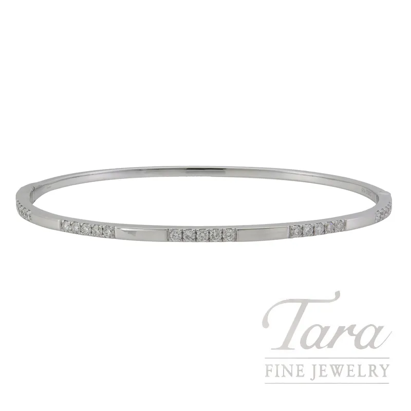 Classic beauty has never been more chic! Fall in love with the remarkable elegance of this incredible 18K White Gold Diamond Bangle Bracelet! A wondrous portrayal of classic style with a modern design, this glorious Bangle Bracelet features gleaming 18K White Gold with 25 Round Diamonds at 0.48TDW. The timeless style and wondrous shimmer of this charming Diamond Bangle make it the perfect accessory for any occasion!