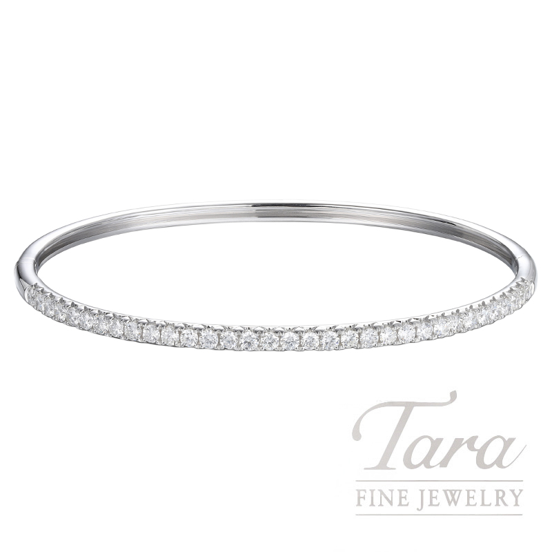 Classic beauty has never been more chic! Fall in love with the remarkable elegance of this incredible 18K White Gold Diamond Bangle Bracelet! A wondrous portrayal of classic style with a twist of modernly chic design, this glorious Bangle Bracelet features brilliant 18K White Gold with 33 Round Diamonds at 1.38TDW. The timeless style and wondrous shimmer of this charming Diamond Bangle makes it the perfect accessory for any occasion!