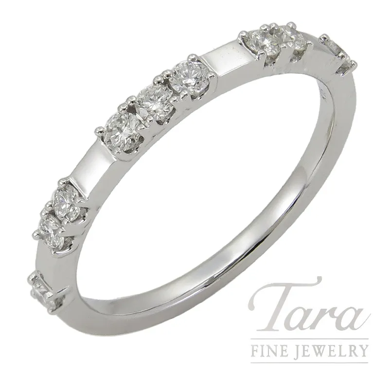 Bask in the radiance of this modern 18K White Gold Diamond Ring! Nothing tops the glorious shine of this stylish 18K White Gold Diamond Ring. When it comes to radiant sparkle, no one does it better than Tara Fine Jewelry Company. This lovely Diamond Ring is crafted from 18K White Gold and features 9 Round Diamonds at 0.27TDW. Such a versatile piece perfect for formal or casual wear!