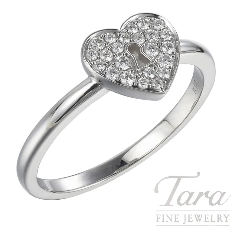 Wonderfully crafted to show off your romantic sense of style, this beautiful 18K White Gold Diamond Heart Ring will add joy and style to any outfit! Such a fun design, this charming Diamond Ring is crafted from brilliant 18K White Gold and features a timeless heart design of 23 Round Diamonds at 0.158TDW. Romance at its finest, this adorable Diamond Ring is sure to steal her heart!