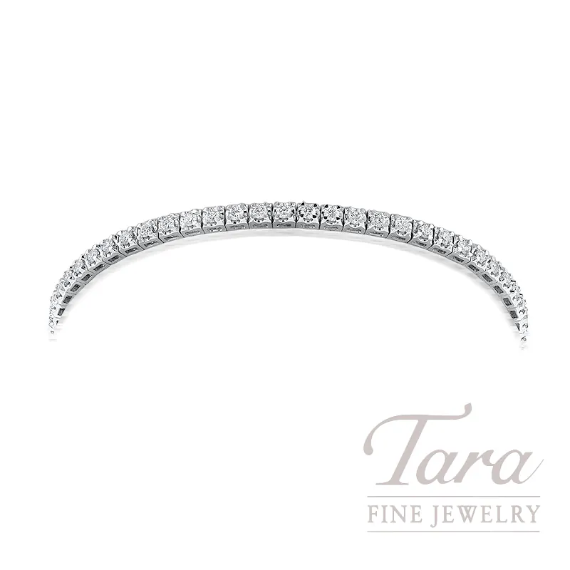 A Diamond Tennis Bracelet is the ultimate statement in everlasting style. A Diamond Tennis Bracelet from Tara Fine Jewelry is one of the most luxurious gifts you could ever give, or treat yourself to! It promises endless sparkle for a special lady! At a generous weight of 10.01G, this magical Diamond Tennis Bracelet is designed on the foundation of 18K White Gold. Featuring the finest Diamonds, the Bracelet is crafted with 57 brilliant Round Diamonds at 2.03TDW. The beauty of this exquisite Diamond Tennis Bracelet is timeless, a favorite accessory to cherish for a lifetime!