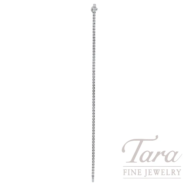 A Diamond Tennis Bracelet is the ultimate statement in timeless fashion! You can never go wrong with a Diamond Tennis Bracelet – it is one of the most versatile splendid gifts you could ever gift yourself or that special someone! Meticulously crafted from radiant 18K White Gold, with 60 Round Diamonds 1.02TDW, at 9.41G this lovely Diamond Tennis Bracelet exudes both class and a sense of chic style. Featuring exceptional Natural Diamonds, the Tennis Bracelets here at Tara Fine Jewelry Company promise unbelievable sparkle and a marvelous comfort fit!