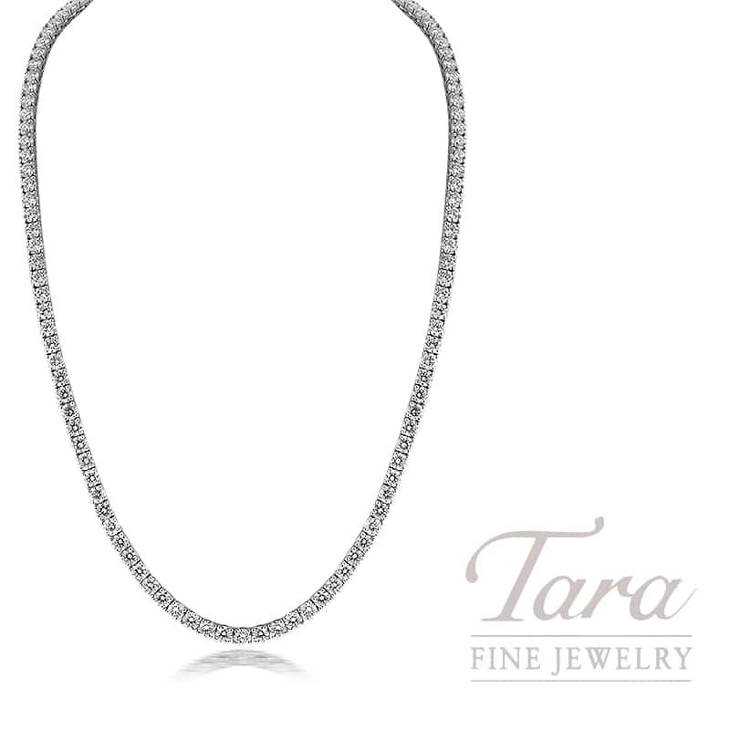 Home to the most beautiful Diamond Necklaces, Tara Fine Jewelry is proud to feature this glorious 18K White Gold Diamond Tennis Necklace. At a generous weight of 21.0G, this marvelous Diamond Necklace is 16.5″ long. Crafted in brilliant 18K White Gold with a timeless tennis design, and exhibiting 118 Natural Round Diamonds at a substantial 17.45TDW, this elegant Diamond Necklace will have all eyes on you!