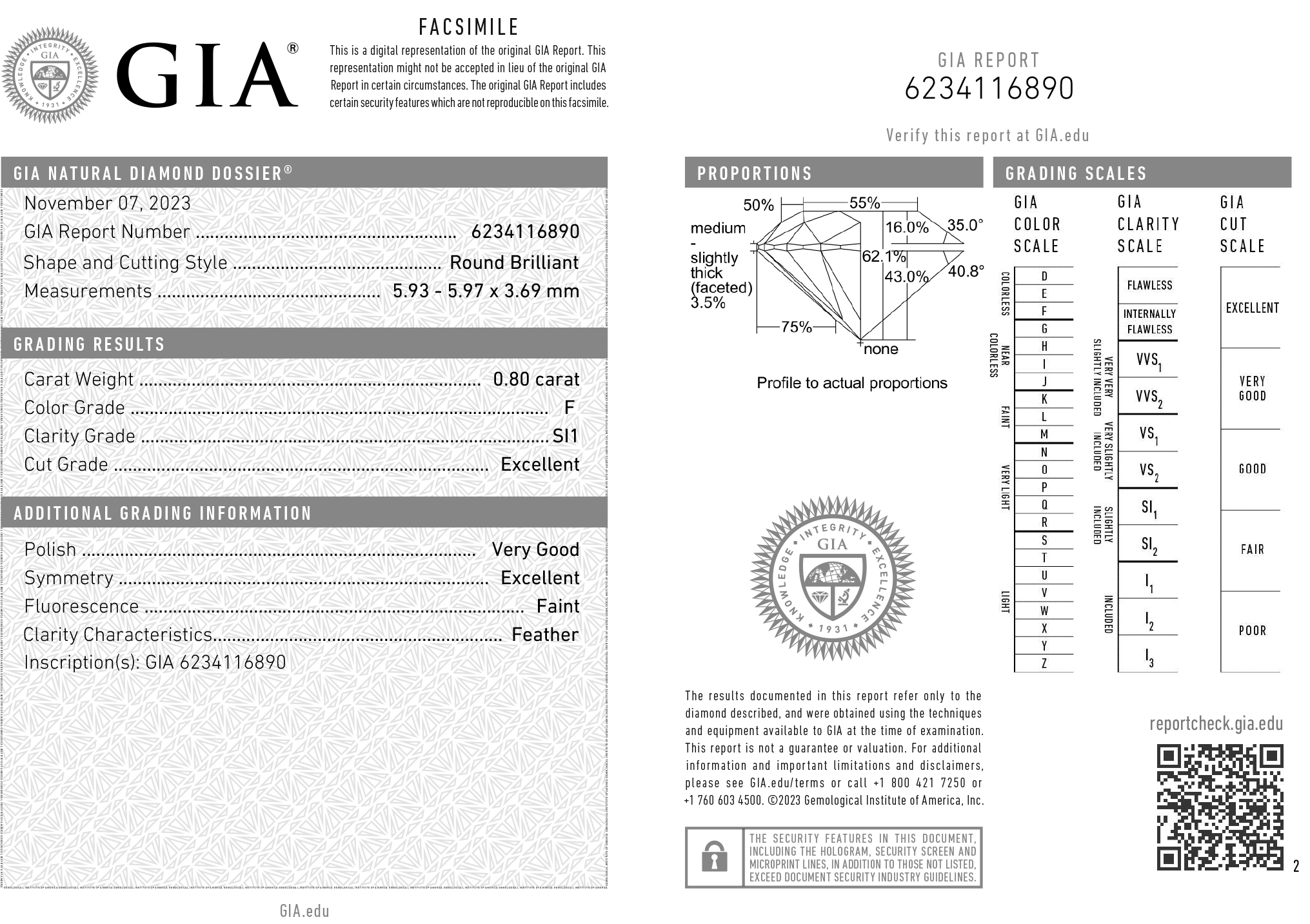 Center Diamond: Round Brilliant F-SI1 GIA Certified .80CT #190-02523: $4,125 (priced separately)