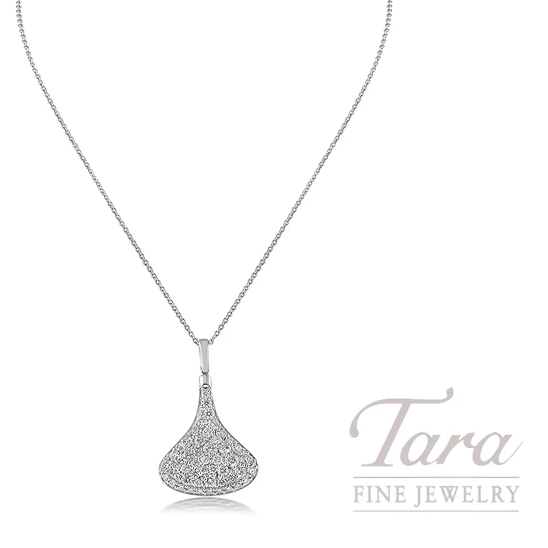 Love is forever. What better way to seal it than with a kiss! Created on the precious metal foundation of 18K White Gold, this lovely Diamond Kiss Pendant is full of whimsical charm. At 2.7G, the dazzle of 50 Round Diamonds covers the front of the Pendant at 1.50TW. The open air design on the back adds dimension to this lovely Diamond Kiss Pendant, to be worn with the necklace of your choice (sold separately).