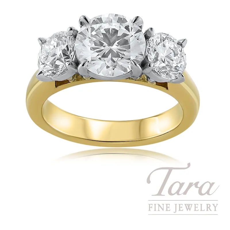 Glamorous in every way, this magnificent Diamond Engagement Ring Setting is of paramount quality and sparkle! This gorgeous set features a luxurious Diamond Setting crafted from shimmering 18K Yellow Gold with accents of 18K White Gold in a 3-stone design. The focal of the Diamond Setting is a supreme 2.03CT Round Diamond certified as G-VS1 (*sold…