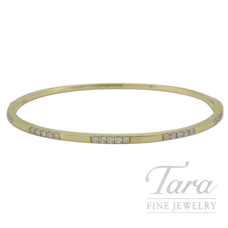 Classic beauty has never been more chic! Fall in love with the remarkable elegance of this incredible 18K Yellow Gold Diamond Bangle Bracelet! A wondrous portrayal of classic style with a modern design, this glorious Bangle Bracelet features glowing 18K Yellow Gold with 25 Round Diamonds at 0.48TDW. The timeless style and wondrous shimmer of this charming Diamond Bangle make it the perfect accessory for any occasion!