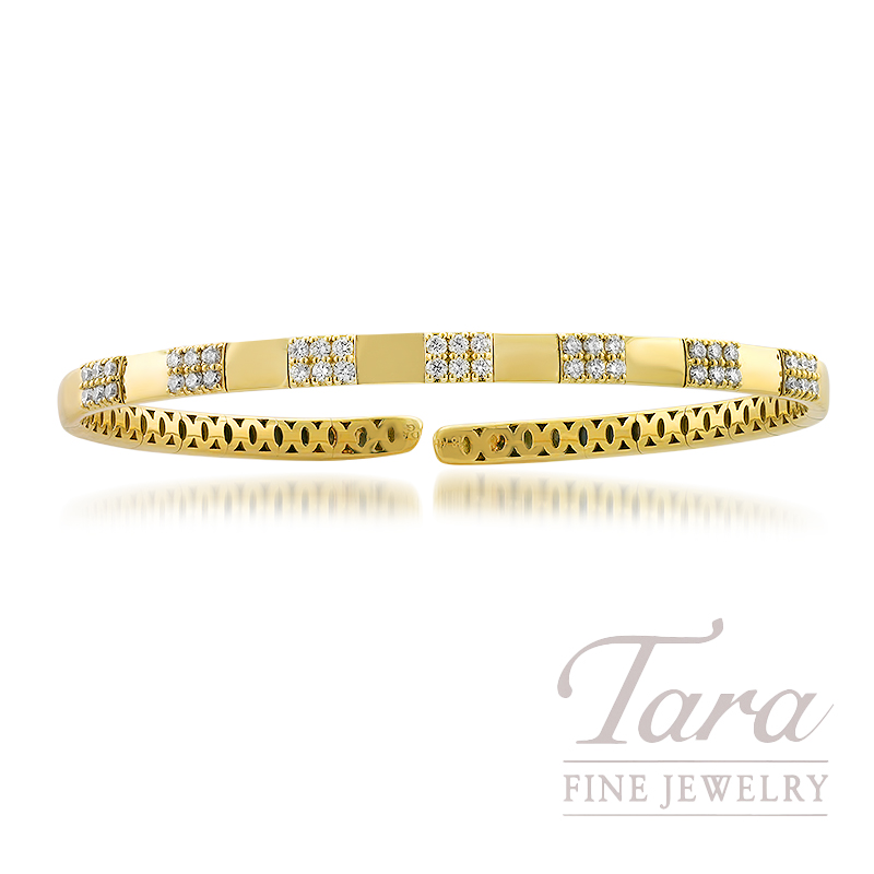 Nothing can top the radiance of this extravagant 18K Yellow Gold Diamond Bangle. A beautiful creation here at Tara Fine Jewelry Company, this brilliant Diamond Bangle promises to shine an unbelievable ray of light. Crafted in brilliant 18K Yellow Gold with a smooth and polished finish, you can’t find an accessory more vibrant than this gorgeous bangle bracelet! For that special touch of glitz and glam that every woman adores, the bangle beautifully features 42 sparkling Round Diamonds at 0.65TDW. Breathtaking and absolutely stunning, this fabulous Diamond Bangle is unmatched in quality, s…