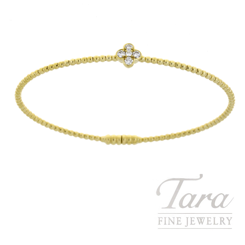 Nothing can top the radiance of this adorable 18K Yellow Gold Diamond Bracelet. Crafted in 18K Yellow Gold, the Bracelet features 5 Round Diamonds at 0.19TDW at its center, for that touch of sparkle! At 4.06G, the beaded texture of this Diamond Bracelet makes it an alluring eyecatching accessory!