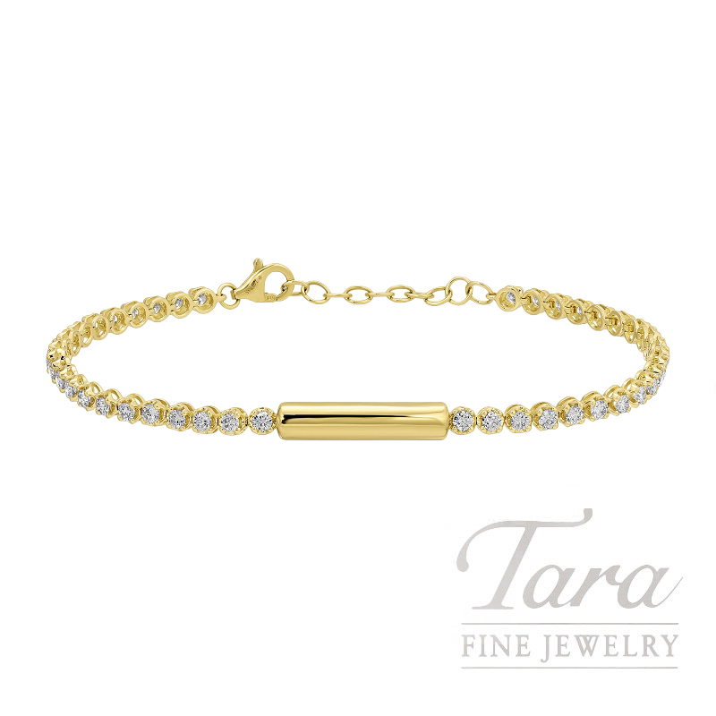 Look no further than this 18K Yellow Gold Diamond Bracelet, for simplistic elegance in a gorgeous design! You will adore this adjustable 6-7″ Diamond Bracelet crafted from luminous 18K Yellow Gold, with 42 Round Diamonds 1.46TDW. At 4.59G weight, this lovely 18K Yellow Gold Diamond Bracelet will bring everlasting sparkle to your fine jewelry collection!