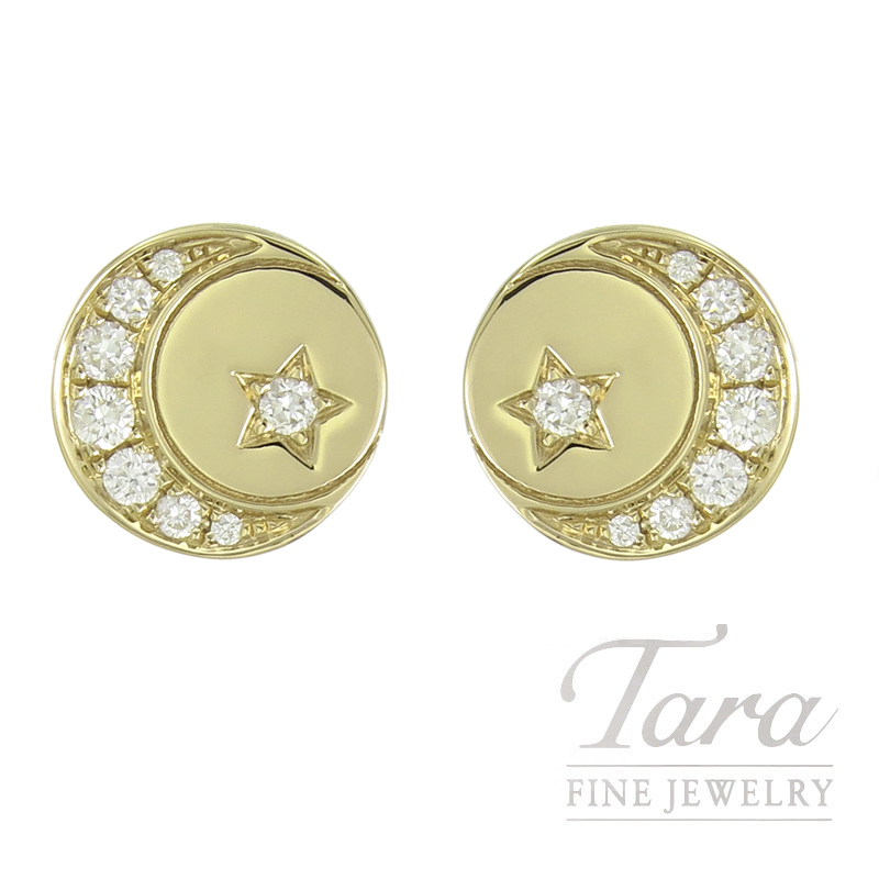 18K Yellow Gold Diamond Celestial Earrings .15TDW, 2.2G