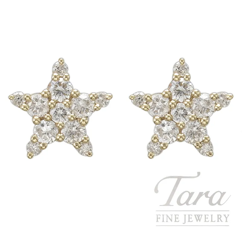Wish upon a star with these charming 18K Yellow Gold Diamond Star Earrings. At 1.55G, this whimsical pair of Earrings are made from gleaming 18K Yellow Gold, and display a charming design of a star, with 22 Round Diamonds at 0.33TDW. When it comes to unique designs and Diamond sparkle, you will adore these 18K Yellow Gold Diamond Earrings!