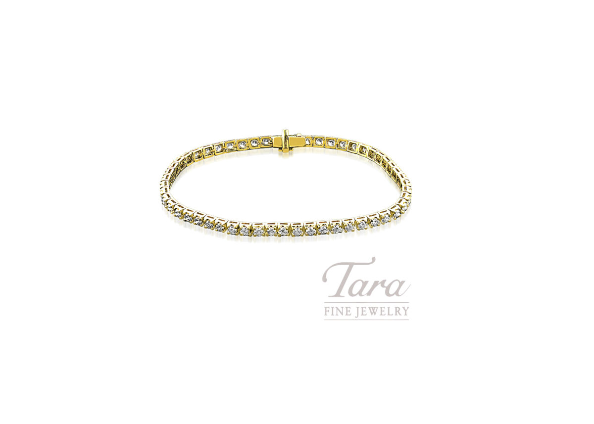 A Diamond Tennis Bracelet is the ultimate statement in timeless fashion! You can never go wrong with a Diamond Tennis Bracelet – it is one of the most versatile splendid gifts you could ever gift yourself or that special someone! Meticulously crafted from radiant 18K Yellow Gold, with 57 Round Diamonds 2.01TDW, at 10.28G this lovely Diamond Tennis Bracelet exudes both class and a sense of chic style. Featuring exceptional Natural Diamonds, the Tennis Bracelets here at Tara Fine Jewelry Company promise unbelievable sparkle and a marvelous comfort fit!