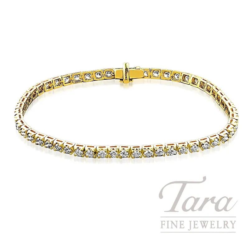 A Diamond Tennis Bracelet is the ultimate statement in timeless fashion! You can never go wrong with a Diamond Tennis Bracelet – it is one of the most versatile splendid gifts you could ever gift yourself or that special someone! Meticulously crafted from radiant 18K Yellow Gold, with 60 Round Diamonds 1.04TDW, at 9.61G this lovely Diamond Tennis Bracelet exudes both class and a sense of chic style. Featuring exceptional Natural Diamonds, the Tennis Bracelets here at Tara Fine Jewelry promise unbelievable sparkle and a marvelous comfort fit!