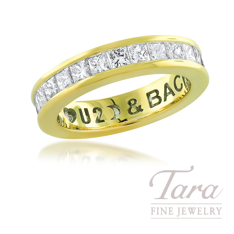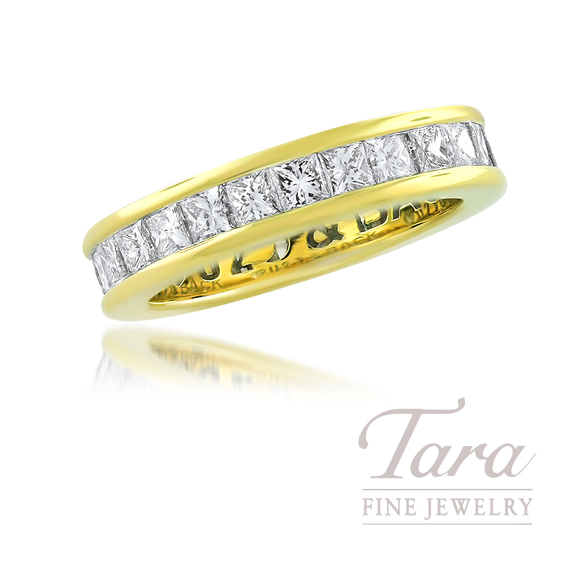 Few designs are as bold and enduring as this custom-made Princess Cut diamond eternity band. Crafted from brilliant 18K yellow gold, this exceptional band features 26 stunning princess-cut diamonds totaling an impressive 2.57 TDW. Designed with a full eternity silhouette, this band provides a continuous …