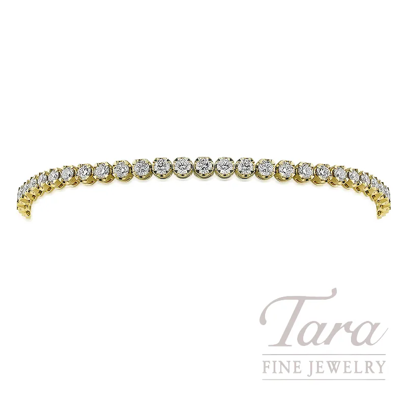 A Diamond Tennis Bracelet is the ultimate statement in timeless luxury! You can never go wrong with a Diamond Tennis Bracelet – it is one of the most versatile splendid gifts you could ever gift yourself or that special someone! Meticulously crafted from luminous 18K Yellow Gold, with 48 Round Diamonds at 5.03TDW, this lovely Diamond Tennis Bracelet exudes both class and a sense of chic style. Featuring exceptional Natural Diamonds at 14.55G, the Tennis Bracelets here at Tara Fine Jewelry Company promise unbelievable sparkle and a marvelous comfort fit!
