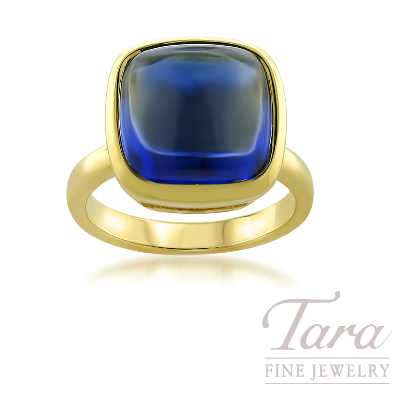 You will not find a more mesmerizing shade of blue than this enchanting Custom 18K Yellow Gold Blue Sapphire Ring. Lab grown to its finest, at a generous 9.93CT weight, this center stone Blue Sapphire is GIA certified. At 8.7G, what a striking presence visible from afar!