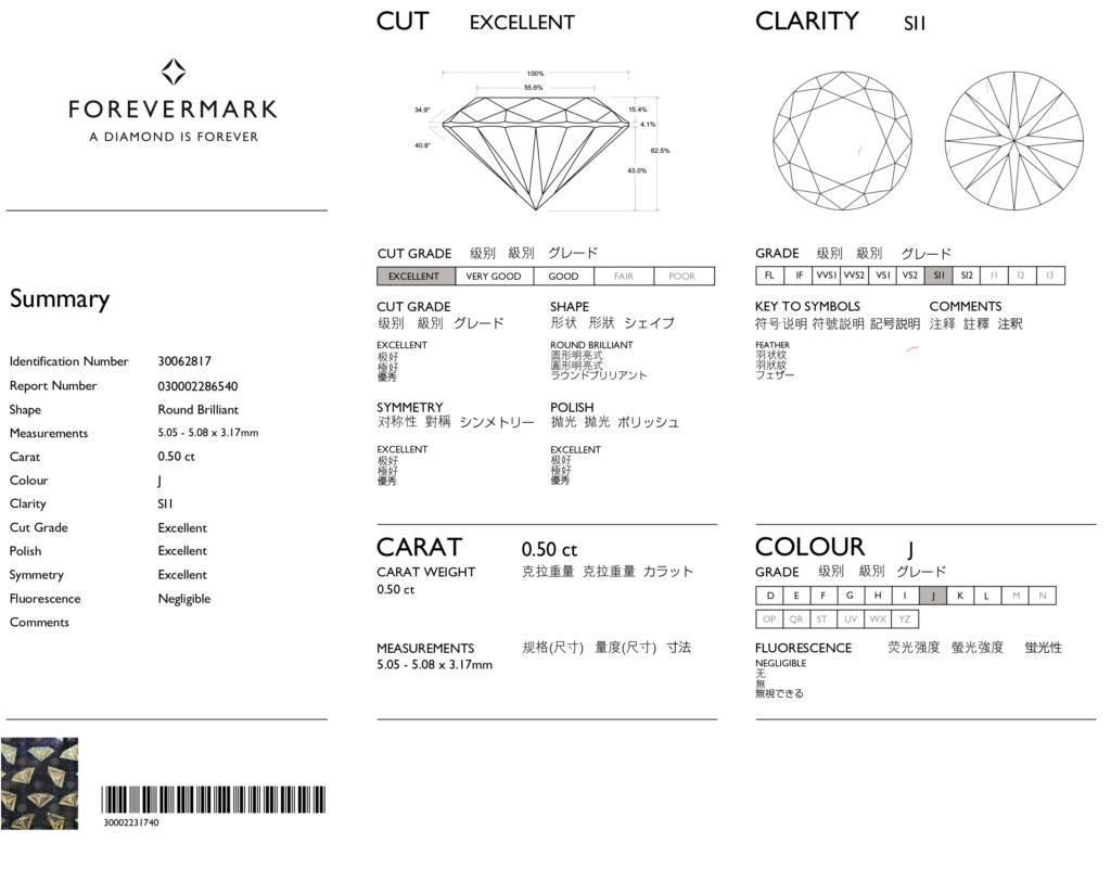 Taking center stage is a stunning 0.50CT J-SI1 De Beers Forevermark round center diamond, globally recognized for its rigorous selection process and…