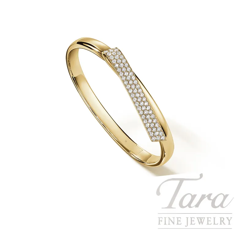 With a breathtaking display of light and brilliance, this Hearts on Fire Inside/Out 18K Yellow Gold Diamond Flip Bangle is the ultimate portrait of chic fashion! Featuring a unique inside out design, the generous 18K Yellow Gold Bracelet of 29.8G beautifully showcases the ribbon of 71 Round Diamonds at 1.63TDW. This Diamond Bangle pairs magically with the matching Hearts on Fire Inside/Out 18K Yellow Gold Diamond Flip Ring* and Hearts on Fire Inside/Out 18K Yellow Gold Diamond Flip Drop Earrings* (both sold separately). You will fall in love with the untamed radiance of this lovely Hearts on Fire Inside/Out 18K Yellow Gold Diamond Flip Bangle from Atlanta's Premier Jeweler, Tara Fine Jewelry Company!