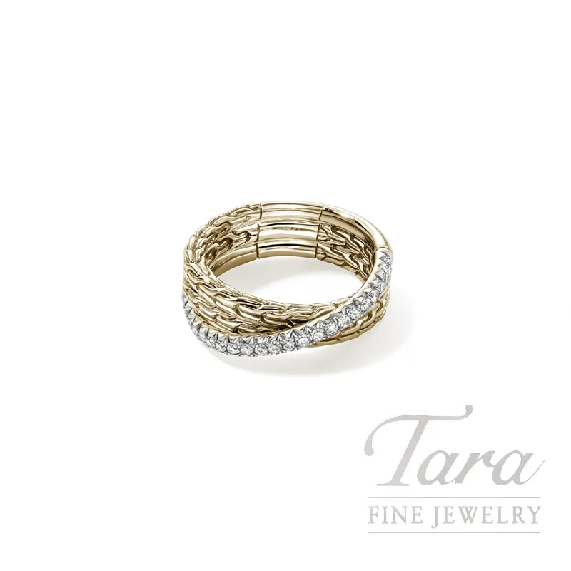 John Hardy Essential Pavé Crossover Ring, Gold, Diamonds