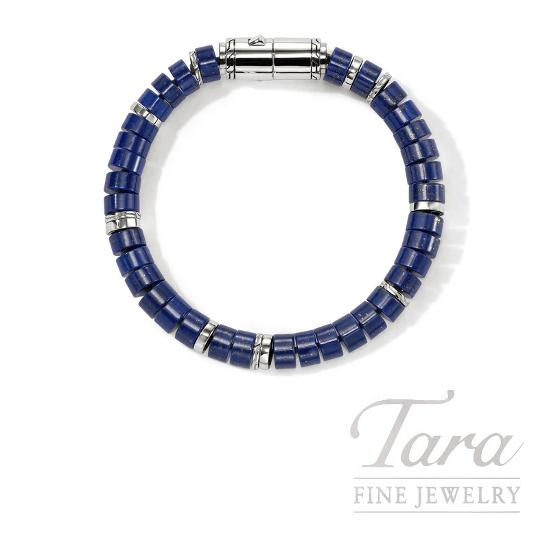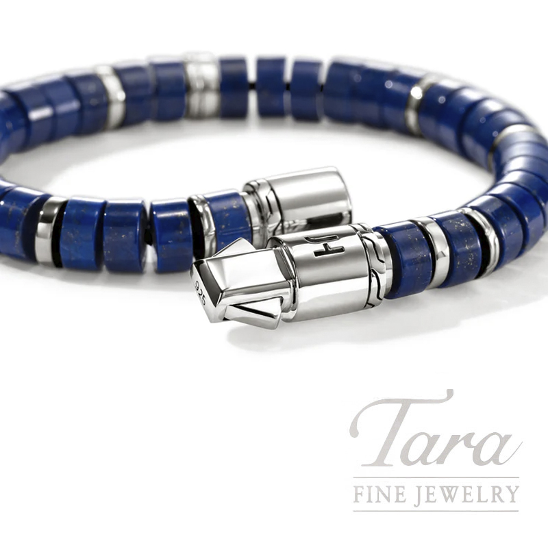 Beachy luxe. A hand-beaded bracelet made with lapis lazuli beads offset by reclaimed sterling silver accents. Artisan handcrafted and ethically sourced.