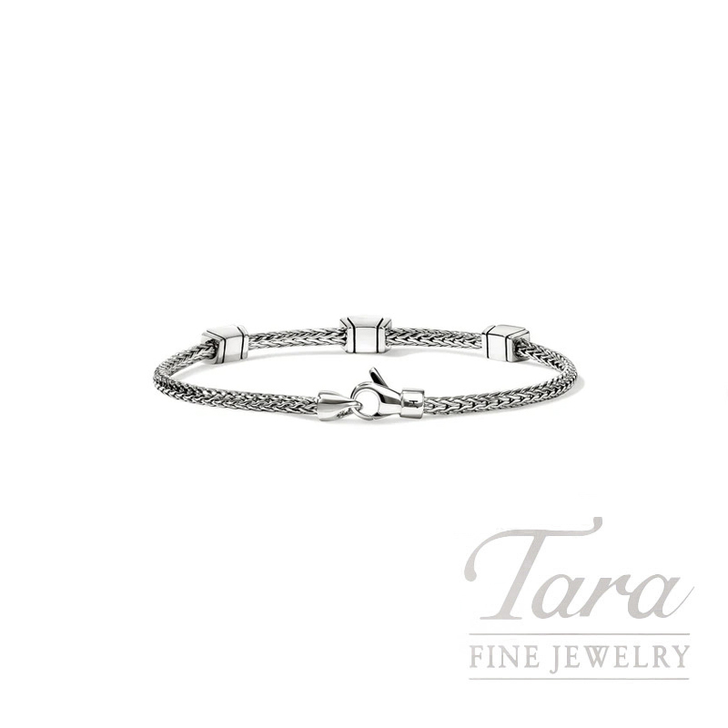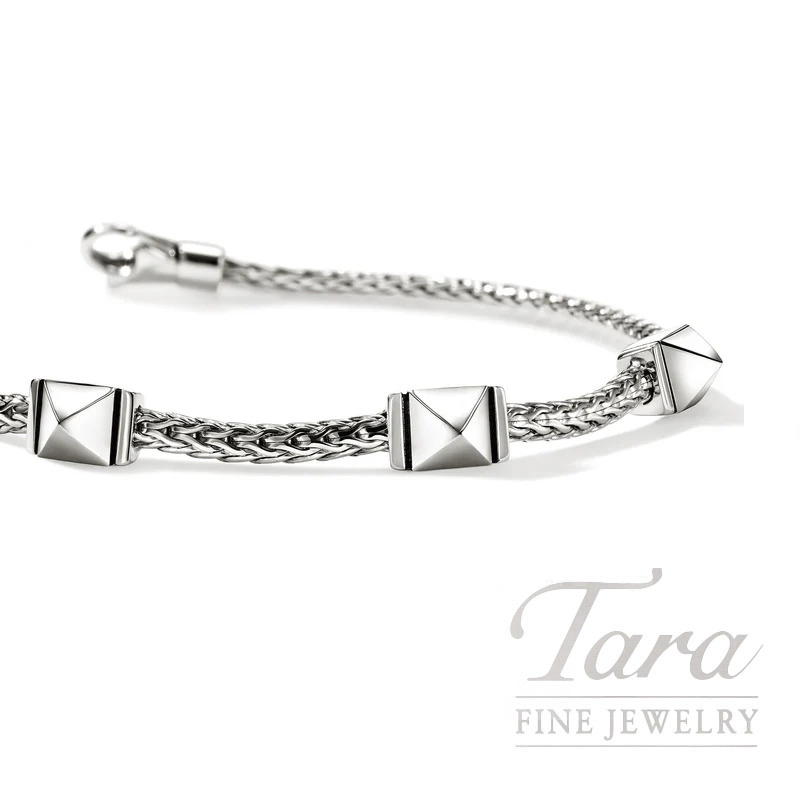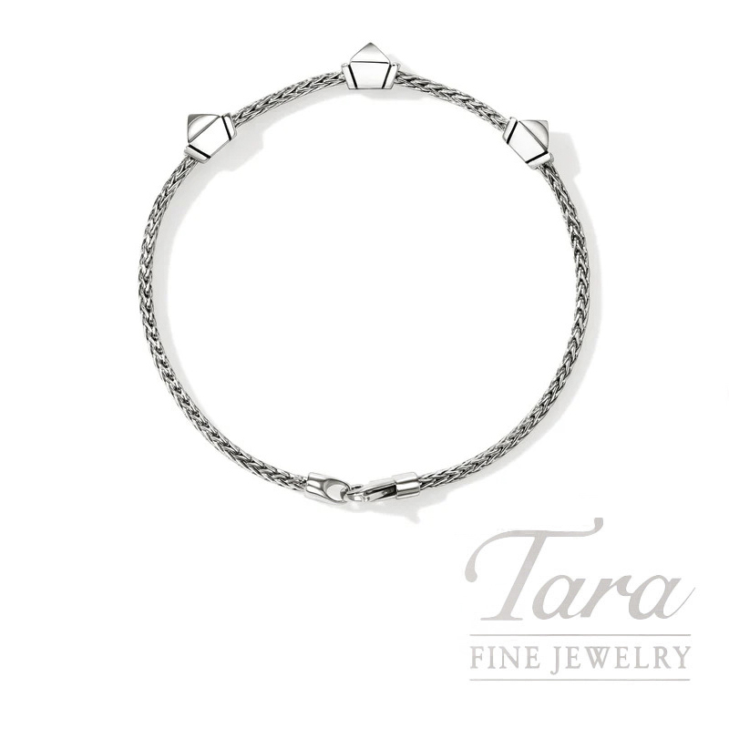 Artisanship with attitude. This sleek chain bracelet features three high-shine studs. Crafted by hand in reclaimed sterling silver.