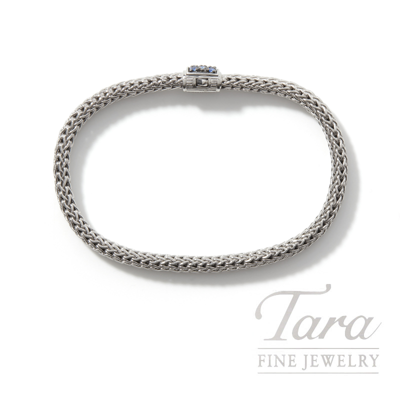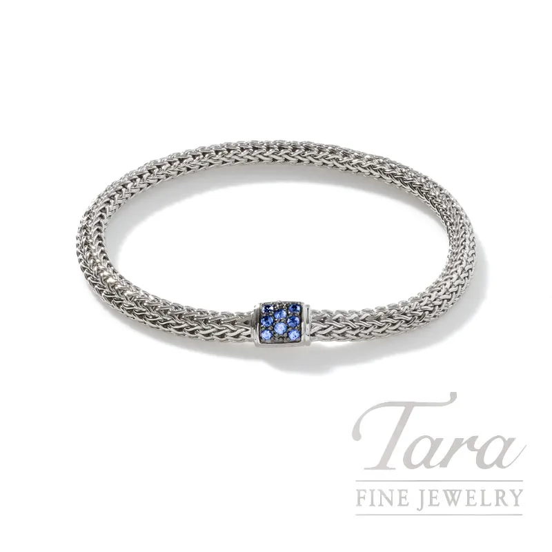 Woven by hand in reclaimed sterling silver, our heritage Icon Chain is the foundational expression of John Hardy artisanship. This one features an ethically sourced blue sapphire clasp.