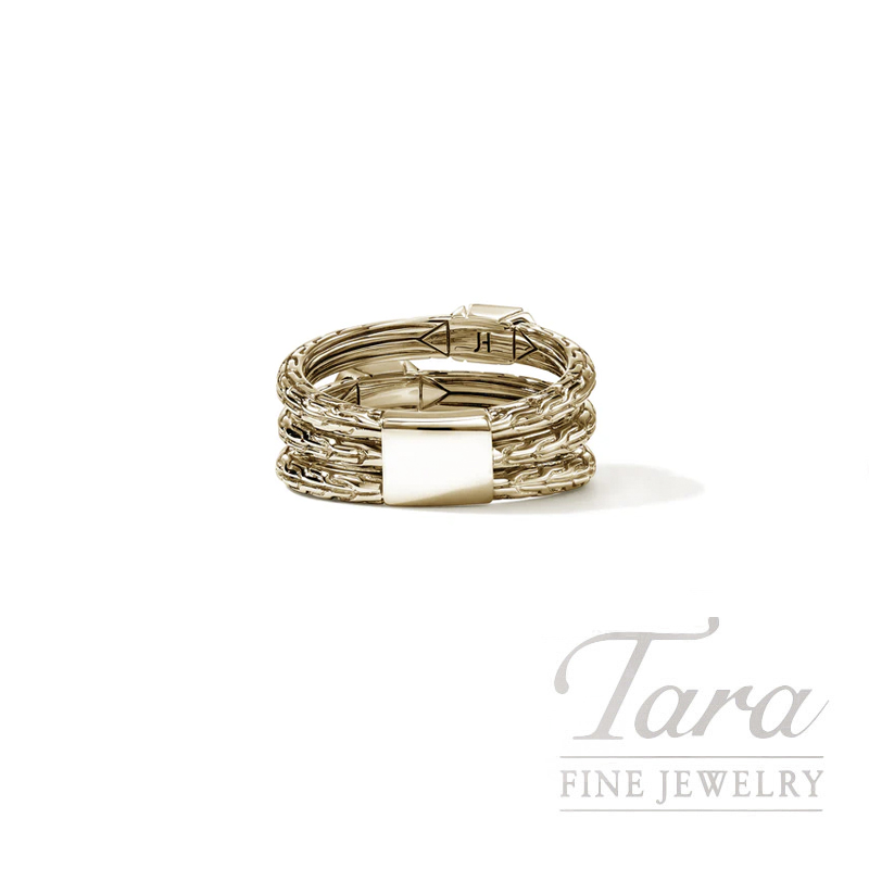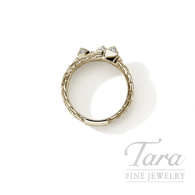 Bold and brilliant. This triple row style features three diamond encrusted studs and handcarved details. Crafted by hand in reclaimed gold with ethically sourced white diamonds.