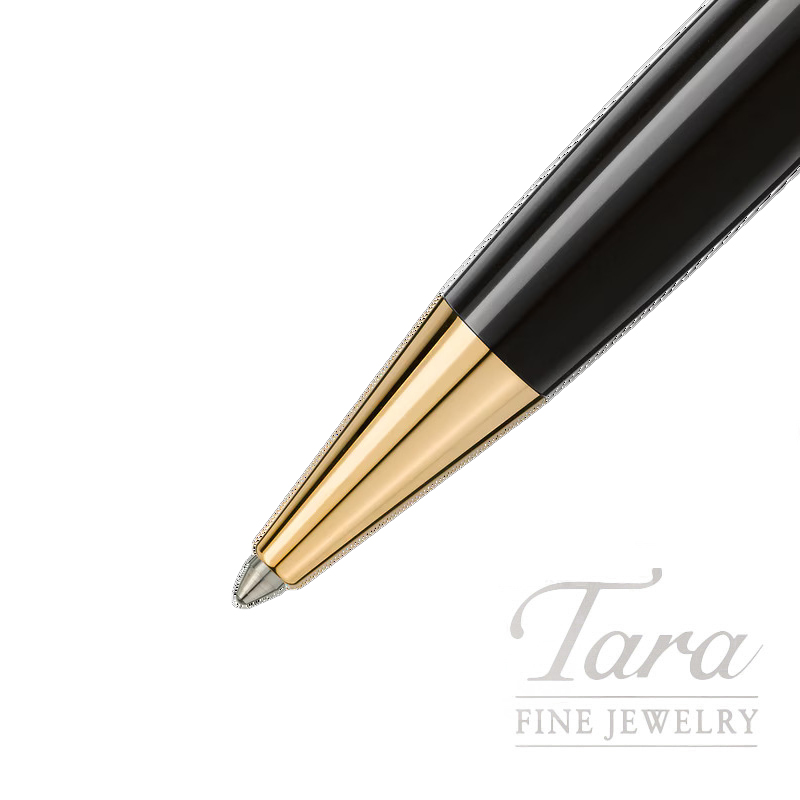 Known for its prestigious status as a symbol of luxury and fine craftsmanship, since its creation in 1906 Montblanc is highly recognized as a beacon of success. The Montblanc Meisterstück Classique Ballpoint Pen in deep black precious resin, features gold coated details and is accented with Montblanc’s iconic white star emblem atop the pen cap. Designed with impeccable craftsmanship and premium materials, this distinguis…
