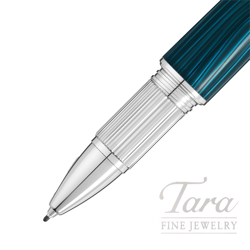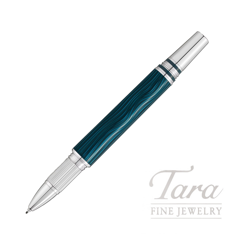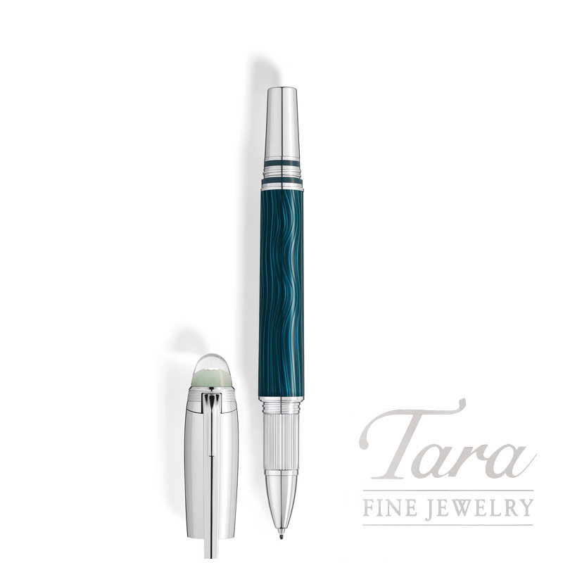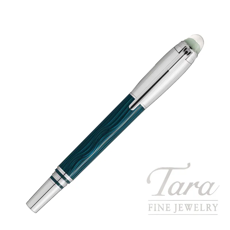 Key Features: Model ID: 132911 Writing System: Fineliner Pen Barrel & Cap: Dark Green Resin Wave Pattern Trim: Platinum-coated fittings Cap Top: Floating Montblanc emblem with translucent dome Inspiration: Northern Lights