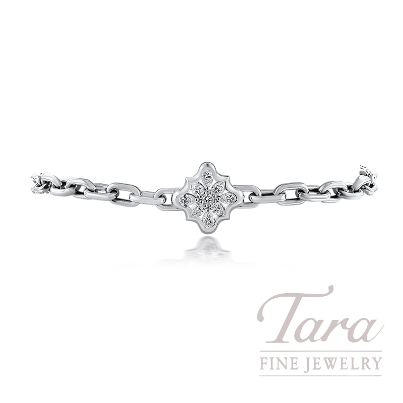 With radiant brilliance, thhis 18K Yellow Gold Diamond Bracelet promises endless sparkle! This lovely 18K White Gold Diamond Bracelet measures 7″ in length in a fancy link design. Created with 9 Natural Diamonds at .76TDW, this versatile 18K White Gold Diamond Bracelet is perfect for night or day wear!