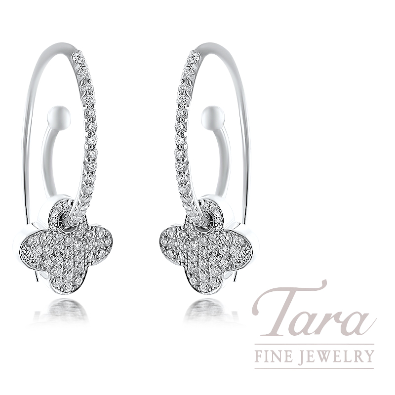 With eclectic charm, designer Norman Covan has created this lovely pair of 18K White Gold Diamond Earrings. Crafted from 18K White Gold on a threader style design, these amazing Earrings are a fun look with whimsical detail including a flower drop dangle. At 6.2G, with 112 Round Diamonds 0.80TDW, these lightweight Earrings easily transition from casual to dress wear!