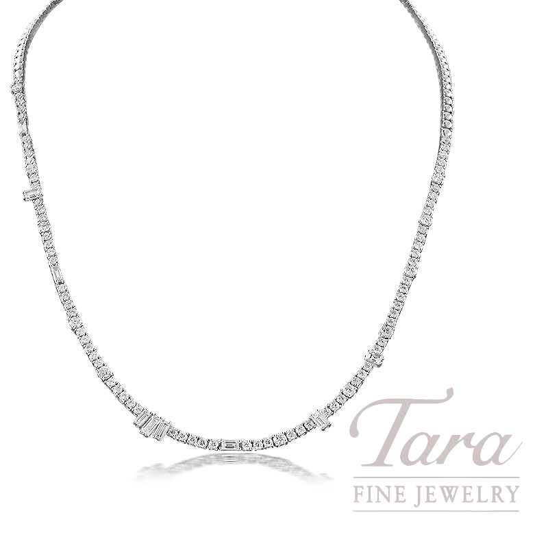 Home to the most beautiful Fine Jewelry and Diamond Necklaces in Atlanta, Tara Fine Jewelry Company is proud to feature this glorious Norman Covan 18K White Gold Diamond Tennis Necklace. Crafted in brilliant 18K White Gold in a tennis style design, and exhibiting a combination of Round and Baguette Diamonds 2.83TDW, this elegant Diamond Necklace will have all eyes on you!