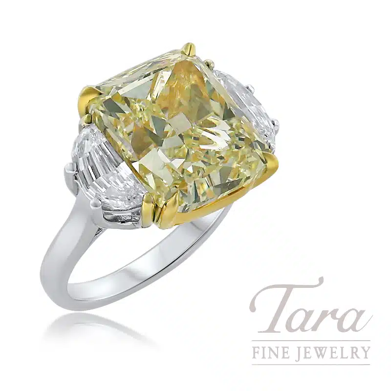 From our exclusive Tara Luxe Collection, we present this radiant Platinum Fancy Yellow Diamond Ring. As alluring as the glow of sunshine, you will be captivated by its luminous beauty! Crafted with a creative blend of Half Moon and Cushion Cut Yellow and White Diamonds, at 9.47TDW the astounding beauty of this GIA Certified Diamond Ring is overwhelming! The magic of this Platinum Fancy Yellow Diamond Ring continues when paired with the matching 18K White Gold Fancy Yellow Diamond Earrings (sold separately).
