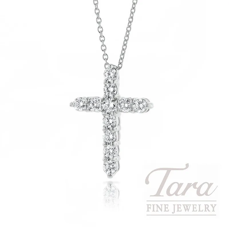 The priceless gift of joy is beautifully exemplified in this Roberto Coin 18K White Gold Diamond Cross Pendant Necklace. Crafted in shimmering 18K White Gold and featuring 11 Round Brilliant Diamonds at 0.88TDW, such a radiant gleam to illuminate the day. With an adjustable 16-18″ chain paired with this lovely Cross Pendant, ensuring comfort fit for everyday wear.