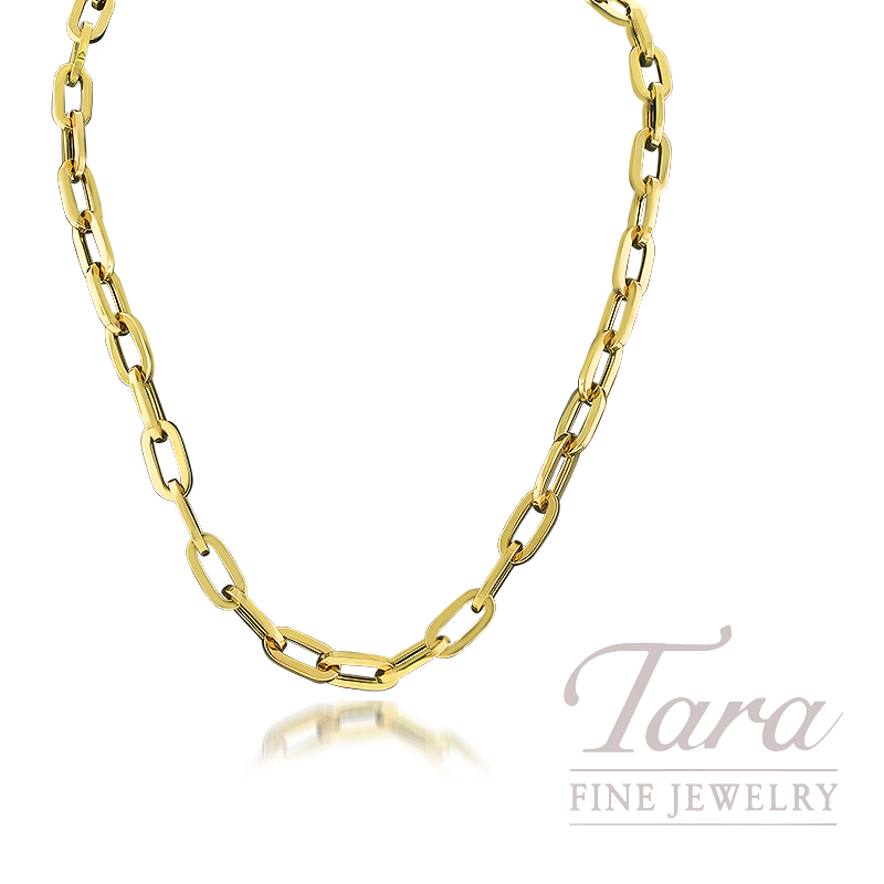 Designer Roberto Coin is known for his elegant and timeless work, and this stunning 18K Yellow Gold Classic Oro Paperclip Link Collar Necklace is no exception! Tara Fine Jewelry Company is proud to showcase fabulous Roberto Coin designs like this gorgeous Necklace that is crafted in brilliant 18K Yellow Gold and features the modern Paper Clip Link design. Sure to be your favorite go to accessory!
