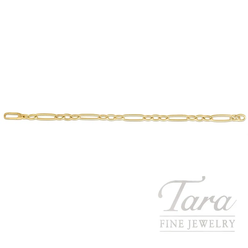 Designer Roberto Coin is known for his elegant and timeless work, and this dashing 18K Yellow Gold Bracelet is no exception! With its alternating link design, the Bracelet is created from the precious metal of 18K Yellow Gold at a weight of 6.8G. A perfect complement for everyday wear!