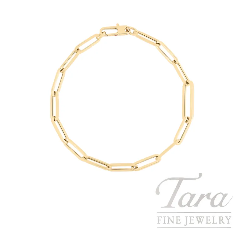 Drape yourself in luxury with this Roberto Coin 7″ Paper Clip Link Bracelet! This gorgeous Bangle is crafted from 18K Yellow Gold and features a Paper Clip link design. Modern yet timeless, you cannot go wrong with adding this beautiful Roberto Coin Paper Clip Bracelet to any outfit day or night!