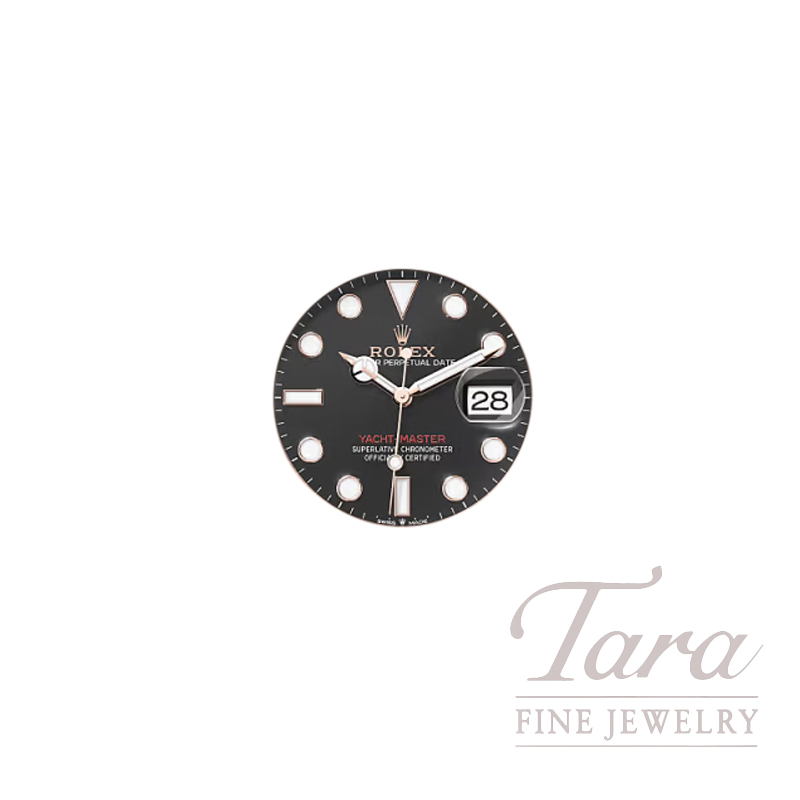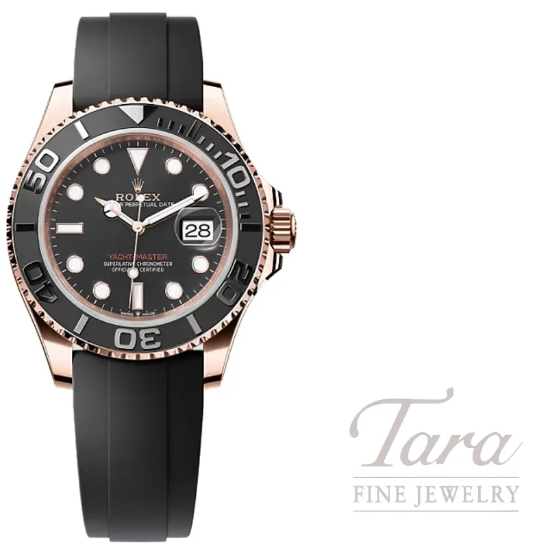 Tara Fine Jewelry Company is proud to present this outstanding never worn Pre-Owned Rolex Yacht-Master 40MM Timepiece. The Rolex Yacht-Master 40MM is crafted in 18K Everose Gold with a rich Black Dial, matte Black Cerachrom Bezel, and the Oysterflex Bracelet. Originally purchased new from Tara, the Watch has only had one owner, and comes complete with its Original Box, Papers, Packer, Hang Tags, and Factory Protective Coatings. The Watch has a Rolex Factory Warranty through October 2028. If you love the distinction and reliability of a Swiss Timepiece, this immaculate Watch is a remarkable addition for your collection!