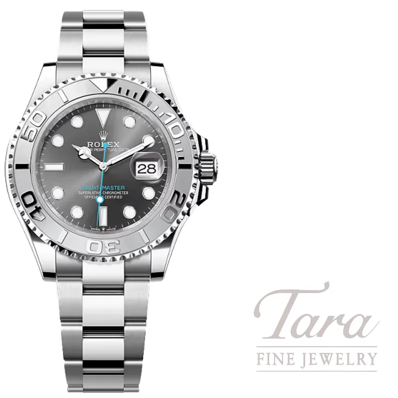 As Atlanta’s authorized dealer for TAG Heuer Watches, Tara Fine Jewelry Company knows a thing or two about quality watches and this lavish timepiece is extraordinary. Tara Fine Jewelry Company is proud to offer this never worn, outstanding pre-owned Rolex Yacht-Master 40MM timepiece. The Rolex Yacht-Master is crafted in Rolesium (904L Oystersteel and Platinum) with a Slate Dial, Fixed, Bidirectional Bezel, and the Oyster Bracelet. Originally purchased from Tara Fine Jewelry Co., the watch was sold new and has only had one owner. This model has never been worn and comes with the original Box, Papers, Packer, and Hang Tags, and Factory Protective Coatings complete. The watch has a warranty through January 2029. If you love a Swiss timepiece, this immaculate/mint condition wristwatch is a must-have addition for your collection!