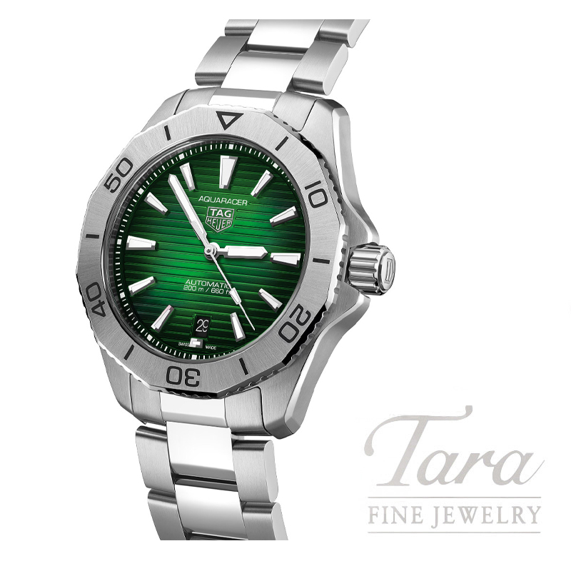 Pairing a deep-green sunray brushed dial with a tremendously robust design in steel, this adrenaline-ready TAG Heuer Aquaracer is fit to explore uncharted territories. The ideal versatile tool to push yourself to the limits.