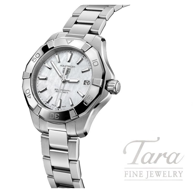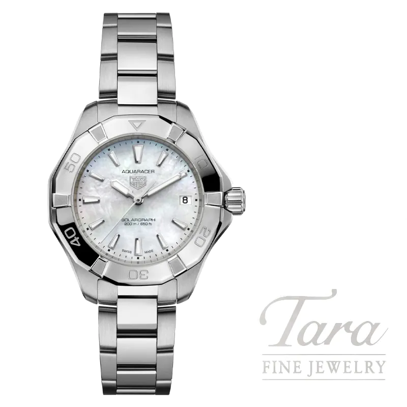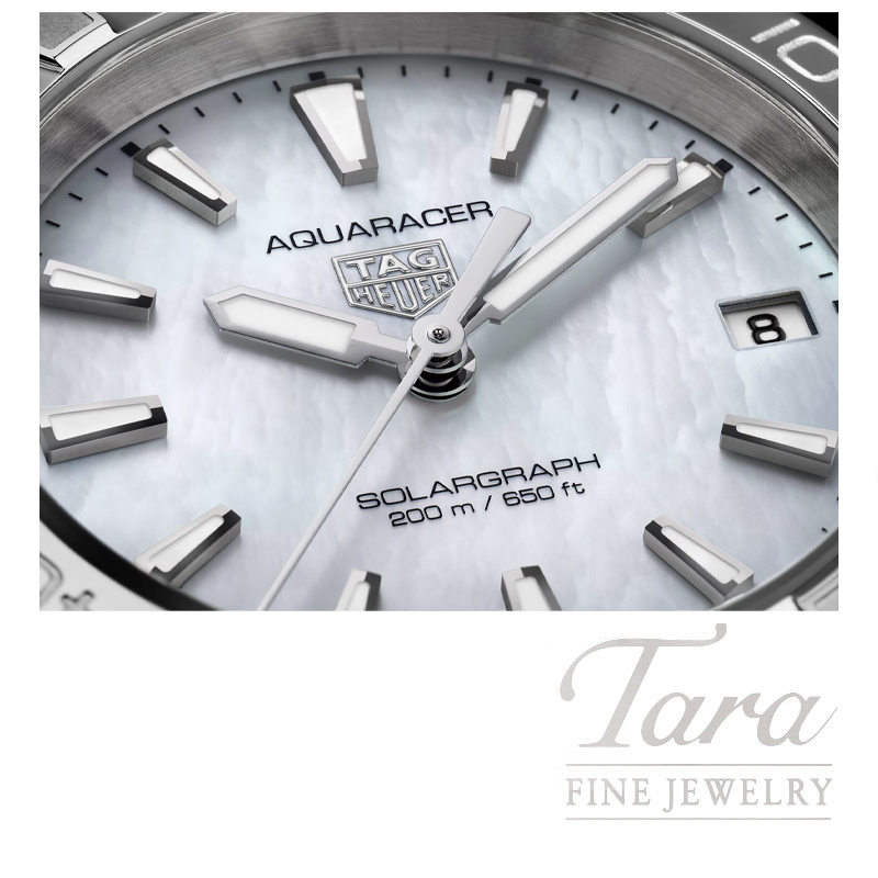 Immerse yourself in the celestial allure of the northern lights with this TAG Heuer Aquaracer, equipped with our Solargraph movement. Designed as an elegant yet resilient timepiece for the modern explorer, this sumptuous 34 mm watch is your go-to companion for rugged adventures and urban sophistication.