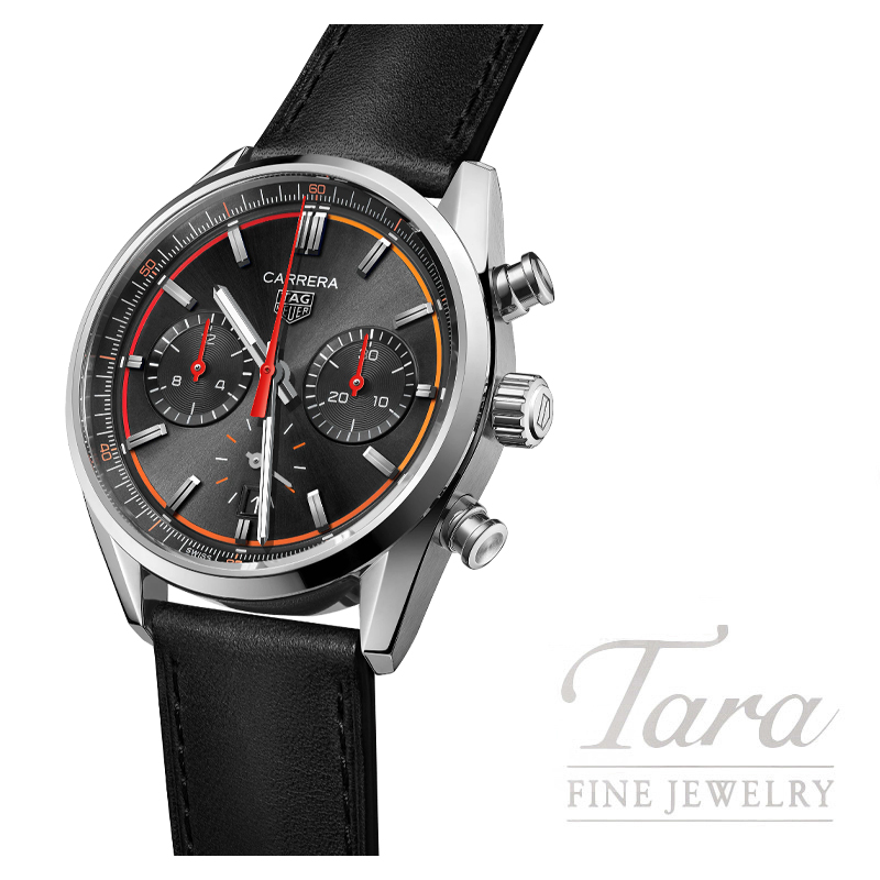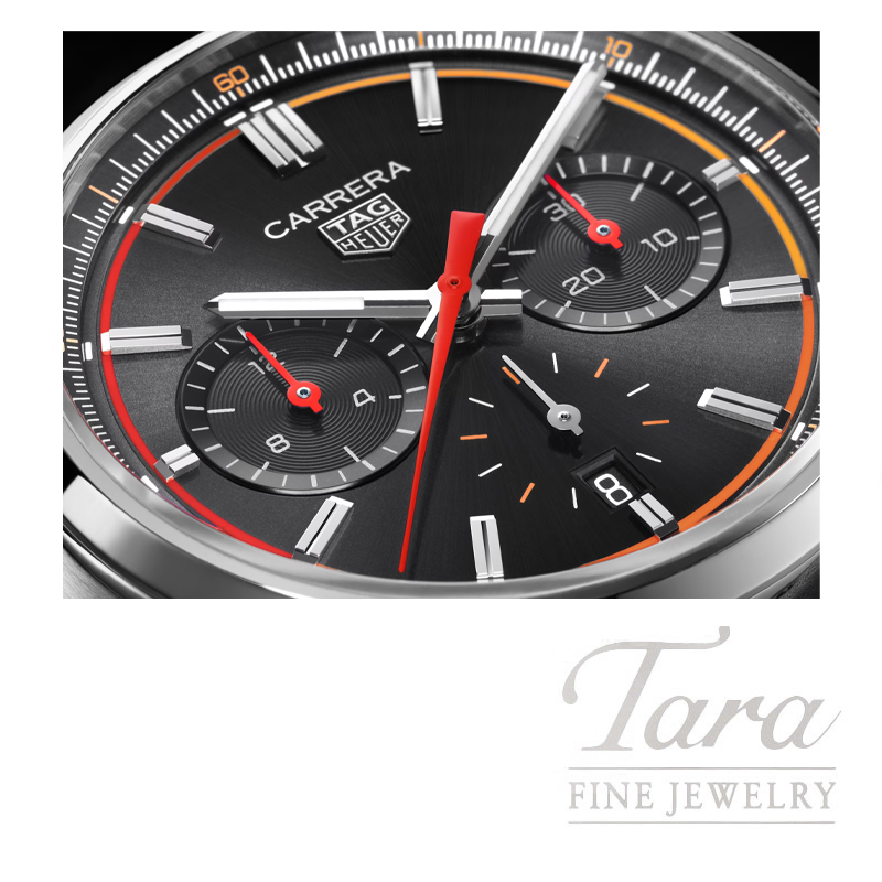 A sporty elegant TAG Heuer Carrera with a 42-mm case in fine-brushed, polished steel, and a timeless black dial come alive with the dynamic gradient of orange. Luxury and technicity at a single stroke, with our in-house Heuer 02 automatic movement.